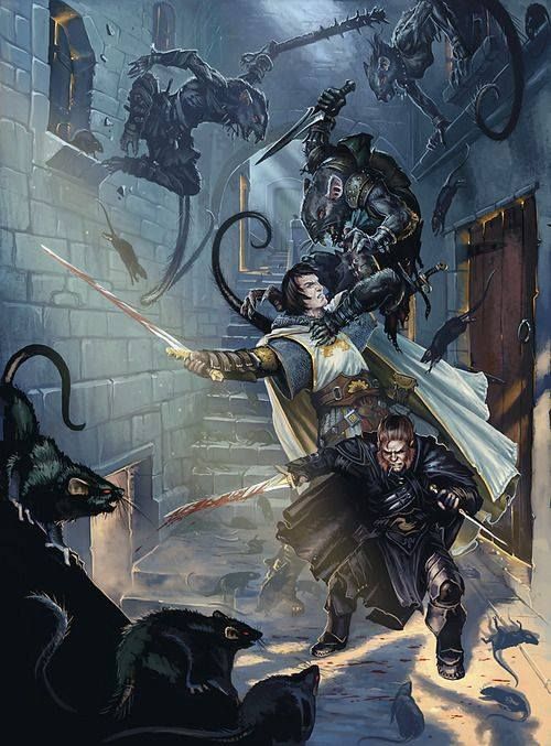 Le combat fait rage. NybarG et Finnan s'occupent des rats du haut, Kerlam'halaha, et Clain assistent Evendur qui viennent d'ouvrir la porte du bas. Les nains viennent de les laisser entrer, mais ils sont rejoint par Zeleen Varnaster et un archer rat. Ils viennent de faire le tour pour prendre les héros en tenaille. Evendur fait rempart avec son corps et se soigne alors qu'il commence a prendre des coups. Il lance également un sort de soin sur NybarG. Celui-ci a repris sa taille normale et est assailli par quatre rats en même temps. Evendur réussira brillament a enchainer les sorts de soins sur lui et le demi-orque, faisant perdre espoir aux rongeurs.