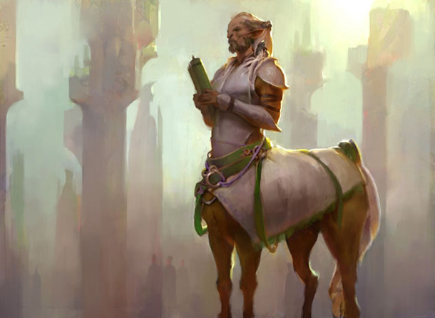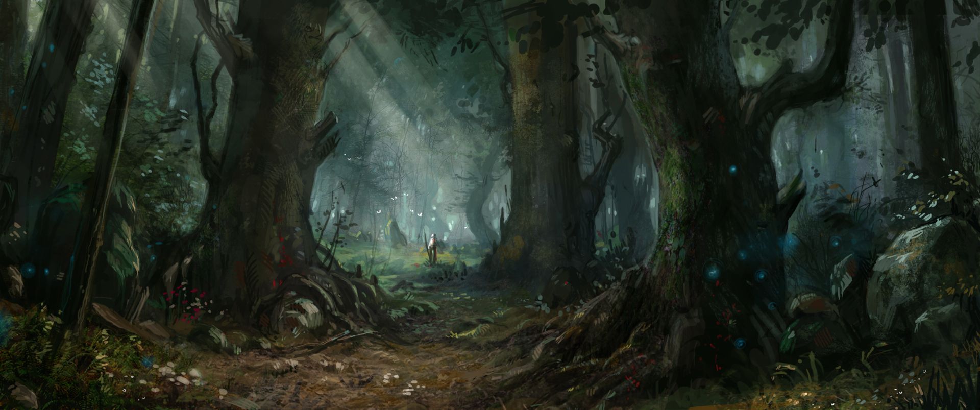 La nuit est tombée. Le ciel est noir, sans étoile. Pourtant NybarG remarque des lumières colorées qui voltigent au-dessus du tumulus. Le centaure avait raison, il se passe quelque chose d’étrange en ces lieux. Le demi-orc plissent des yeux. Deux ombres approchent, à pas feutrer. La première semble humanoïde tandis que la seconde … La seconde semble se transformer. D’apparence trapue et sur quatre pattes, l’ombre est maintenant humanoïde comme la première. Le barbare réveille ses compagnons et se met en position. Les deux anachorètes s’arrêtent à la limite du cercle de lumière émis par le feu du camp. L’un deux prend la parole : « Étrangers, vous êtes bien trop prêt de notre forêt. Quittez les lieux et ne revenez pas. »